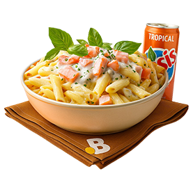 Pâtes, escalope de poulet, champignons, crème fraîche.