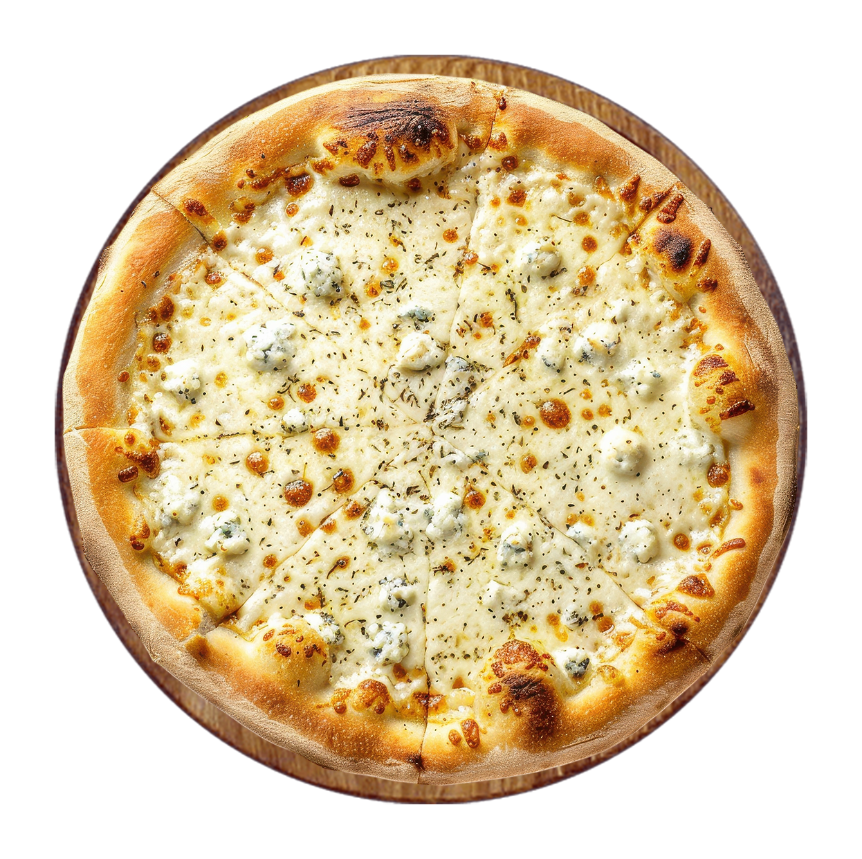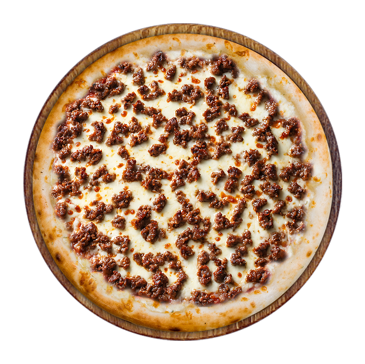Crème fraîche, mozzarella, boursin, viande hachée, oignons.